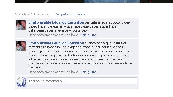 La persona que firma los comentarios, dice ser el Dr. Emilio Aroldo Eduardo Castrillon, Vocal del Superior Tribunal de Justicia de la Provincia de Entre Ríos, lo que me hace presumir que no se tratarían de dichos del propio Dr. Castrillon, habida cuenta de que si así lo fuera, por la envestidura que el mismo detenta y habiendo tomado conocimiento real de los hechos por el denunciados, debería haberla radicado ante la autoridad competente y no publicarlos en una red social. Es un acto que de absoluta irresponsabilidad y de poca seriedad de parte de quien lo haya realizado.-