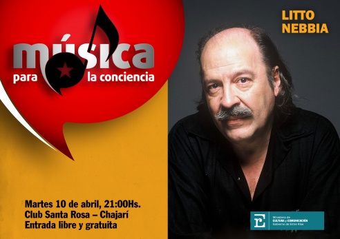 El cantautor Litto Nebbia brindará un concierto gratuito en el club Santa Rosa de la ciudad de Chajarí el martes 10 de abril en el marco de las actividades por los 30 años de la guerra de Malvinas. Será en la segunda edición de Música para la Conciencia, ciclo de shows con entrada libre que organiza el Gobierno de Entre Ríos.