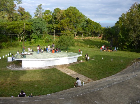 Los jóvenes que están recuperando el anfiteatro comentaron que luego de que ellos comenzaron con los trabajos de limpieza, una cuadrilla del municipio llegó al lugar y blanqueó las escalinatas que hacen de gradas del anfiteatro. Pero luego no realizaron más tareas en el lugar. No obstante, hay que destacar, que la limpieza del lugar y el escenario y la construcción debajo de él, fue acondicionado y pintado a través de ésta iniciativa.