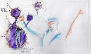 «El mural aún no había sido terminado, se encontraba en su primera etapa, luego emergería El Eternauta a traves de él, conectando al desaparecido guionista Oesterheldl en los ’70 y a Julio en nuestra actualidad».