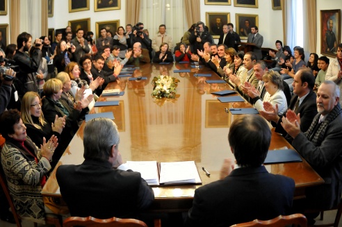 En el acto, el ministro Lauritto expuso la importancia de este acuerdo y recordó la instrucción dada a principios de mayo por el gobernador Sergio Urribarri para generar un espacio de participación que incluyera a todos los actores. Detalló que en ese marco el mandatario precisó tres consignas claras: dar cumplimiento al fallo judicial del 30 de abril, fijar un plazo cierto para la normalización efectiva de la Universidad con la mayor democratización y respetando su autonomía y asumir el compromiso de garantizar con el respaldo presupuestario la realización de los 55 concursos que están en trámite.
