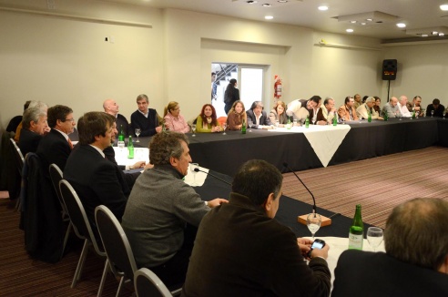 El gobernador Sergio Urribarri junto al vicegobernador José Cáceres y los ministros de su gabinete, mantuvo un nuevo encuentro de trabajo con los diputados y senadores justicialistas. Ratificó su apoyo a la política de sustitución de importaciones y la limitación a la compra de dólares. “Nos protegen de la crisis”, dijo e instó a su gobierno a defender estas medidas todos los días “como militantes, con argumentos y acciones”.