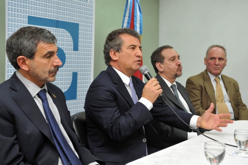 El gobernador Sergio Urribarri y el ministro de Ciencia y Tecnología, Lino Barañao, participaron de la firma del convenio entre el Consejo Nacional de Investigaciones Científicas y Técnicas (Conicet) y la Universidad Nacional de Entre Ríos (UNER) que establece la creación del programa de radicación de investigadores para la integración del Centro de Investigaciones y Transferencia de Entre Ríos (CITER).