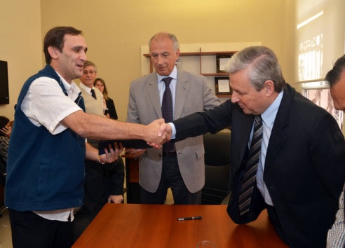 En el Instituto Autárquico de Planeamiento y Viviendas (IAPV) se firmó la resolución por la cual se acepta a los integrantes de la Asociación del Magisterio de Enseñanza Técnica (Amet), Oscar Albarracín y Celia Zapata como parte de la Unidad Coordinadora para las nuevas obras del programa Techo Digno, primera etapa, 500 viviendas destinadas al sector. El encuentro contó con la presencia del ministro de Educación, José Lauritto, y del titular del IAPV, Oscar Marelli.