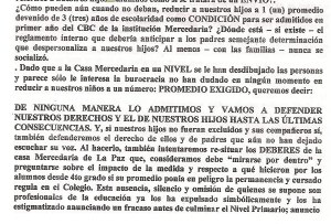 Numerosos reclamos por situaciones en el Colegio Mercedario de la ciudad de La Paz se difundieron en el programa radial “Mañanas en positivo”. Los padres afirman que «la institución exige promedio 8, en el 2º ciclo EGB, caso contrario no van a poder continuar con sus estudios secundarios y deberán pedir el pase para otras instituciones».