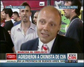 El cronista Néstor Dib, del canal de noticias C5N, sufrió una agresión mientras cubría la manifestación por el 8N, a metros del Cabildo.