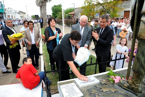 En la ocasión hicieron uso de la palabra el intendente Daniel Pavón; el titular de la Unidad Ejecutora Provincial, Faustino Schiavoni, y el gobernador Sergio Urribarri. Por otra parte, el mandatario le entregó un presente floral a la mamá y a los familiares del cabo nogoyaense, Julio César Monzón, muerto en el combate del Atlántico Sur. También recibieron medallas cada uno de los ex combatientes presente y se descubrió una placa recordatoria al pie del monumento al Soldado de Malvinas.