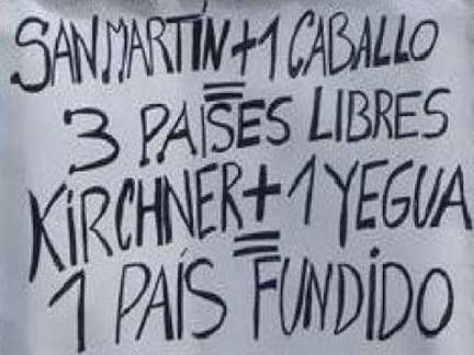 En el muro de Facebook de la Escuela Nº 1 José de San Martín de La Paz fue compartida una imagen que rezaba: “San Martín, más un caballo, igual a tres países libres. Kirchner, más una yegua, un país fundido”.