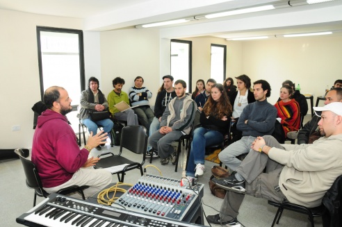 Los profesores que enseñan en las distintas formaciones del Programa Orquestas Infantiles y Juveniles recibieron en primer término una capacitación en la que se abordaron los aspectos sociales de la enseñanza de la música como vehículo de inclusión, en una actividad que estuvo a cargo de la licenciada en Trabajo Social Mabel García. Luego, con el Negro Aguirre, abordaron los aspectos artísticos y musicales.