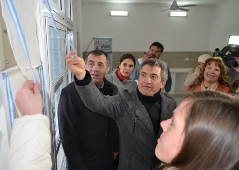 Tras las palabras y la bendición de la sede a cargo de un sacerdote, se procedió al corte de cintas, la descubrimiento de placas recordatorias y a un recorrido por las instalaciones por parte del gobernador, la intendenta y el presidente de Apadea.