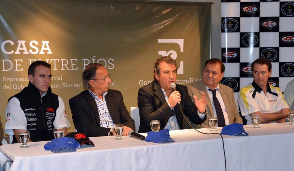 Junto a los presidentes de la Asociación Corredores de Turismo Carretera (ACTC), Oscar Aventin; de Río Uruguay Seguros, Lucio Godoy y del Club de Volantes Entrerrianos, Romeo Pisano y los corredores Gurí Martínez, Mariano Warner, Nicolás y Pope Bonelli, Martín Ponte y el bonaerense Matías Rossi; el mandatario presentó la fecha 11º del campeonato automovilístico en la Casa de Entre Ríos en Capital Federal frente a periodistas provinciales y nacionales.