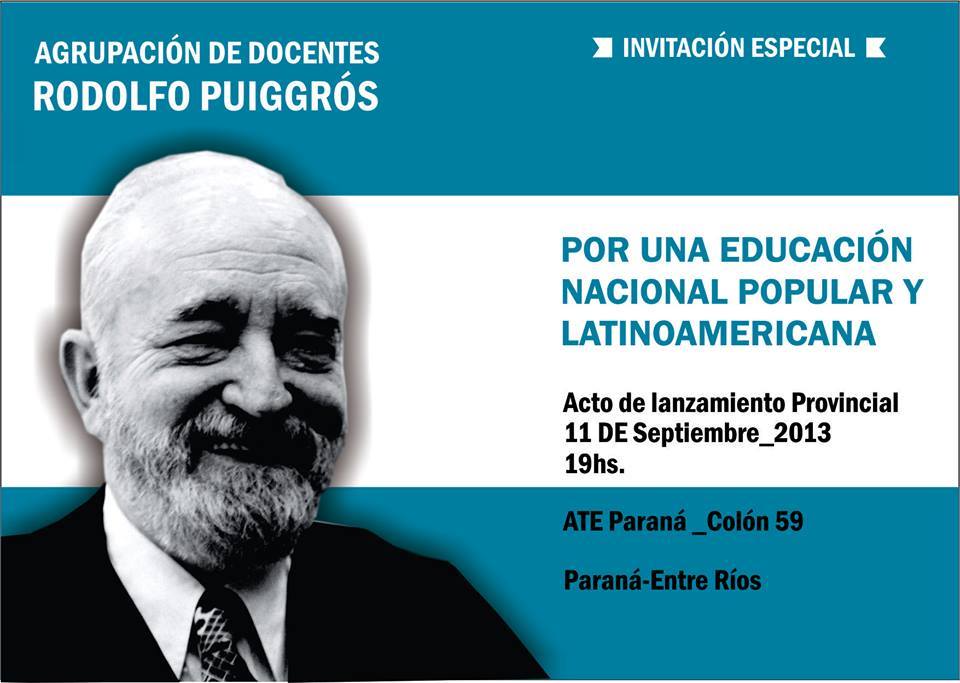 La agrupación docente Rodolfo Puiggrós hace su presentación provincial este miércoles 11 de septiembre a la hora 19 en ATE Paraná, calle Colón 59.