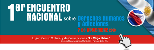 El Instituto Provincial de Redes Territoriales de Prevención de Adicciones, del Ministerio de Educación, Deportes y Prevención de Adicciones, invita al 1er Encuentro Nacional sobre Derechos Humanos y Adicciones que se realiza el jueves 7 de noviembre de 2013 de 8 a 14 horas en el Centro Cultural y de Convenciones “ La Vieja Usina ” de la ciudad de Paraná, Entre Ríos.