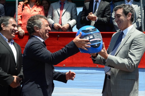 El ministro del Interior y Transporte, Florencio Randazzo, y el gobernador de Entre Ríos, Sergio Urribarri, inauguraron la nueva sede de la Dirección de Prevención y Seguridad Vial de la localidad de Oro Verde, donde entregaron además cinco móviles totalmente equipados.