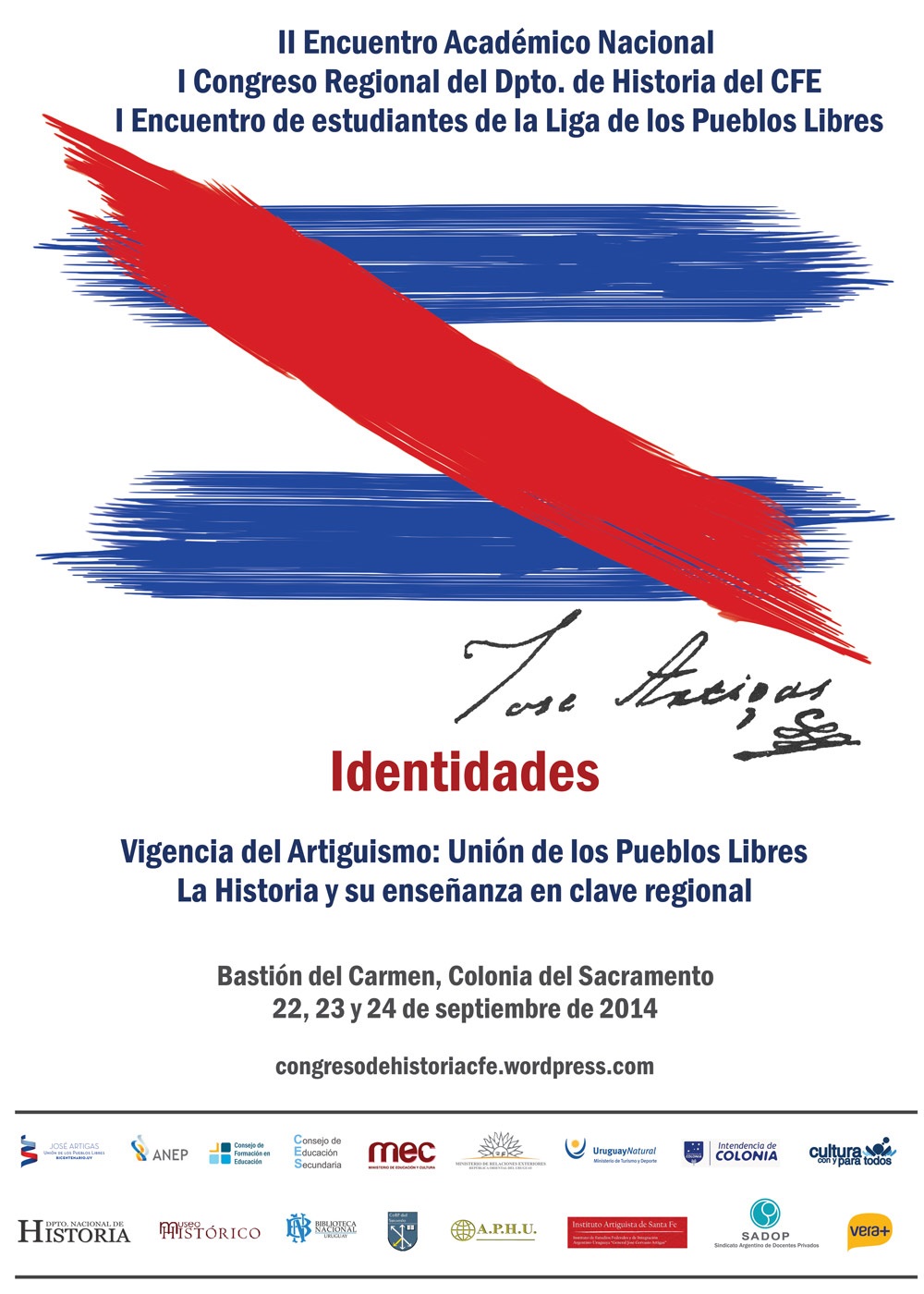 Del 22 al 24 de septiembre se realiza en Colonia del Sacramento, Uruguay, el Congreso de Historia “Identidades. Vigencia del Artiguismo. Unión de los Pueblos Libres. La Historia y su enseñanza en clave regional”.