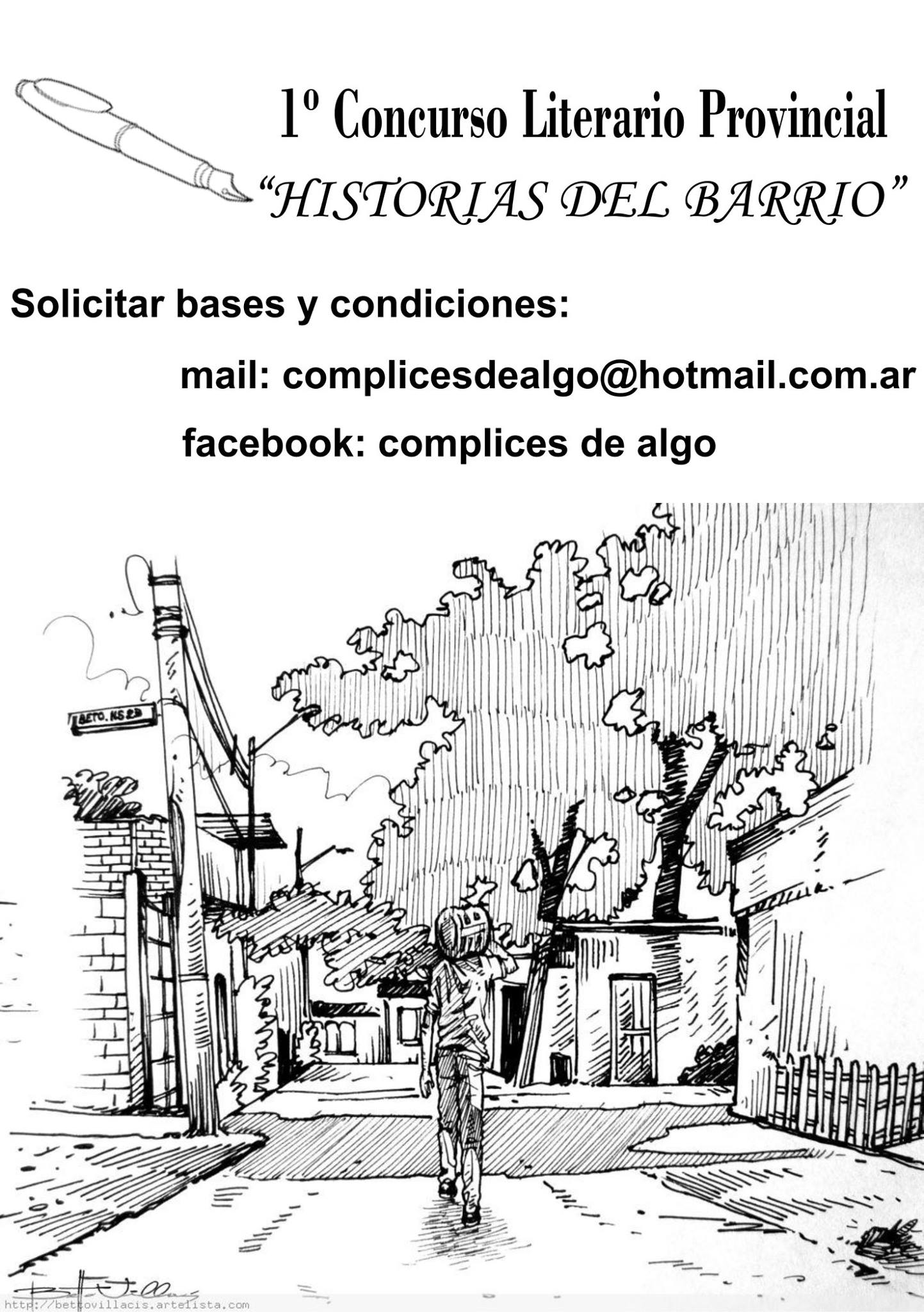 El Espacio Cultural «Cómplices de Algo» en colaboración con Radio 12 (FM 89.1) y diario «El Entre Ríos» de la ciudad de Colón, invita a los interesados de la provincia de Entre Ríos, a presentar cuentos breves al 1er. Concurso Literario Provincial «Historias del Barrio».