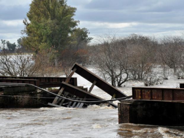 Campos inundados y rutas anegadas en el centro agrícola del país