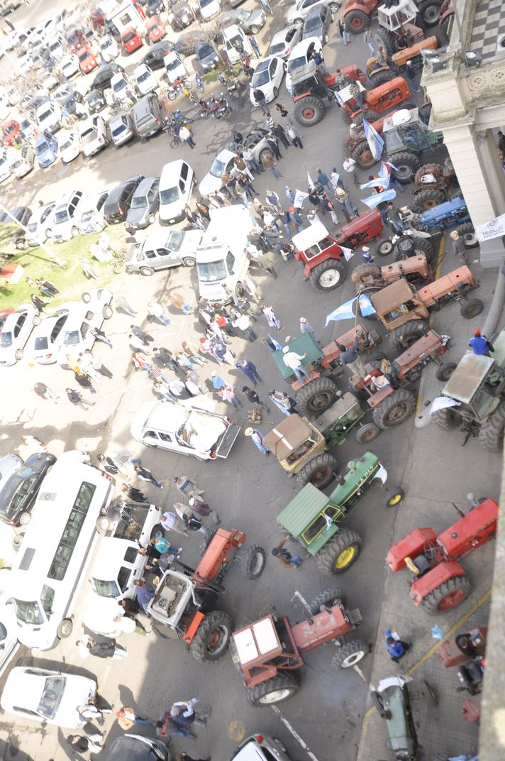 Luego de esto, el presidente de la Federación Agraria, Elvio Guía, junto a otros dirigentes, subieron a los tractores, apostados en la puerta de la Casa de Gobierno y hablaron por megáfono tratando de calmar los ánimos.