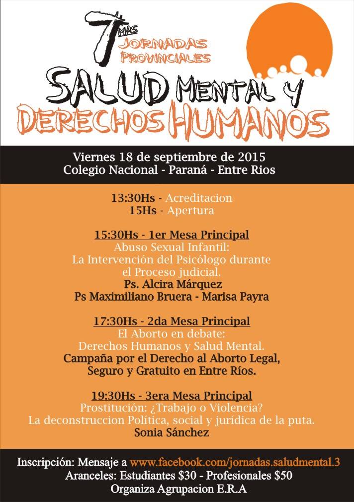 Las 7º Jornadas Provinciales de Salud Mental y DD. HH. serán el 18 de septiembre en el Colegio Nacional «Domingo F. Sarmiento» de Paraná.