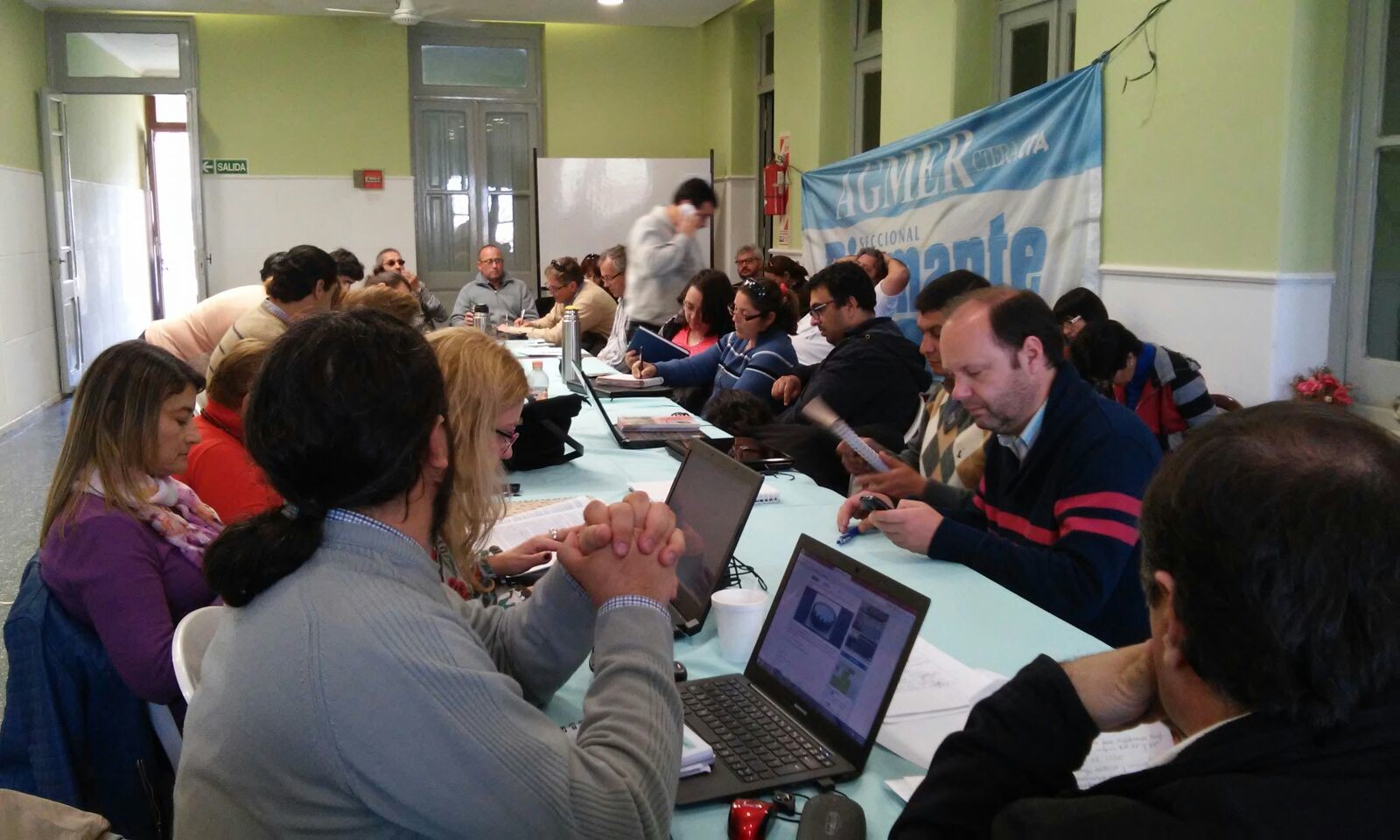 «Los Secretarios Generales de AGMER reunidos en la Ciudad de Diamante el día 5 de Octubre de 2015 expresamos a la Comunidad Educativa entrerriana nuestra posición acerca de la convocatoria a un ámbito de discusión salarial en el Ministerio de Trabajo, recibida por el Sindicato el día de la fecha.