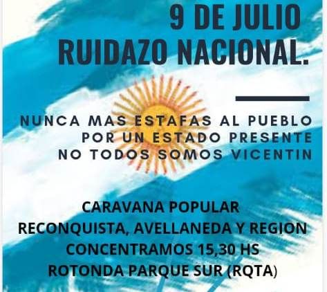 “GRAN BOCINAZO NACIONAL Y POPULAR con BANDERAS (argentinas, Wiphala, de los partidos y agrupaciones que apoyan la intervención, de los gremios, municipios, organizaciones territoriales, populares, estudiantiles o de lo que sea), bombos, pitos, matracas, bocinas (como se hace para fin de año en los barrios populares)”.