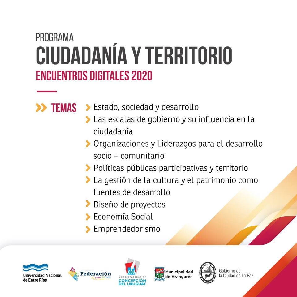 Este lunes 10 de agosto a las 11:00 a través de una videoconferencia se realizará el lanzamiento de un programa de extensión áulica de la Universidad de Entre Ríos «Ciudadanía y Territorio, encuentros digitales 2020».