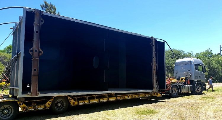 Ya está en La Paz el tercer módulo para la Planta de Tratamiento de efluentes cloacales.
