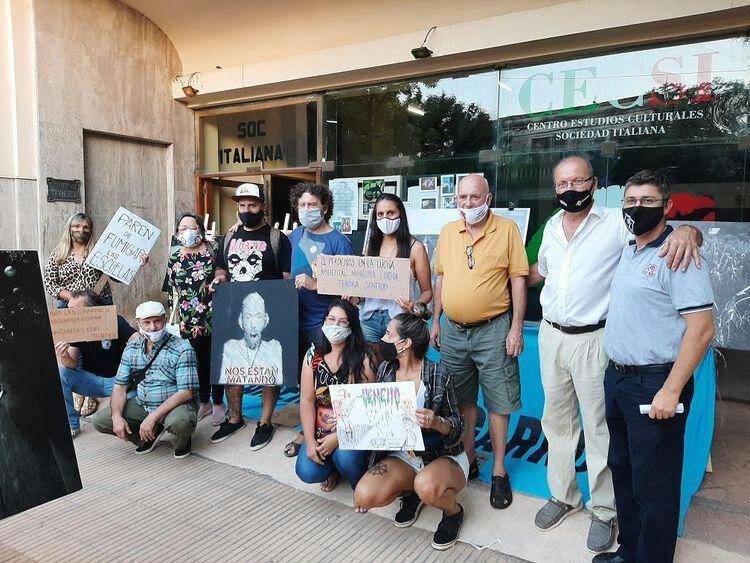 También participaron artistas locales: cantaron Angelina Rivero junto a Paula Naón, José Palacios y Luciano Gil (Ninio Abril) realizó en pocos minutos una retrato de Fabián Tomasi utilizando aerosoles, trabajo que fue obsequiado para la Multisectorial. Hubo aportes de asistentes a la muestra con consignas y dibujos alusivos a esta lucha que no cesa y crece en cada rincón de la provincia y distintos puntos del país especialmente en la Pampa Húmeda, corazón sojero de la Argentina.