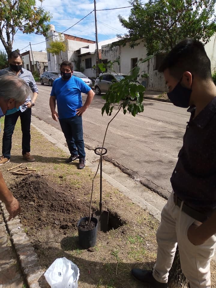 Con la consigna «Plantamos Memoria», vecinos, vecinas, integrantes de organizaciones sociales y políticas se reunieron en la placita Linares Cardozo y plantaron un Lapacho Rosado.