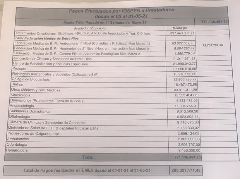 “El 14 de mayo pasado, reunidos con autoridades de Femer y los presidentes de Colegios Médicos de Paraná, Gualeguaychú, Concepción del Uruguay y Concordia, les pregunté si el debate era puramente arancelario y me dijeron que no, que querían seguir debatiendo el nomenclador nacional como instrumento organizativo para asociarlo al nomenclador de IOSPER”.