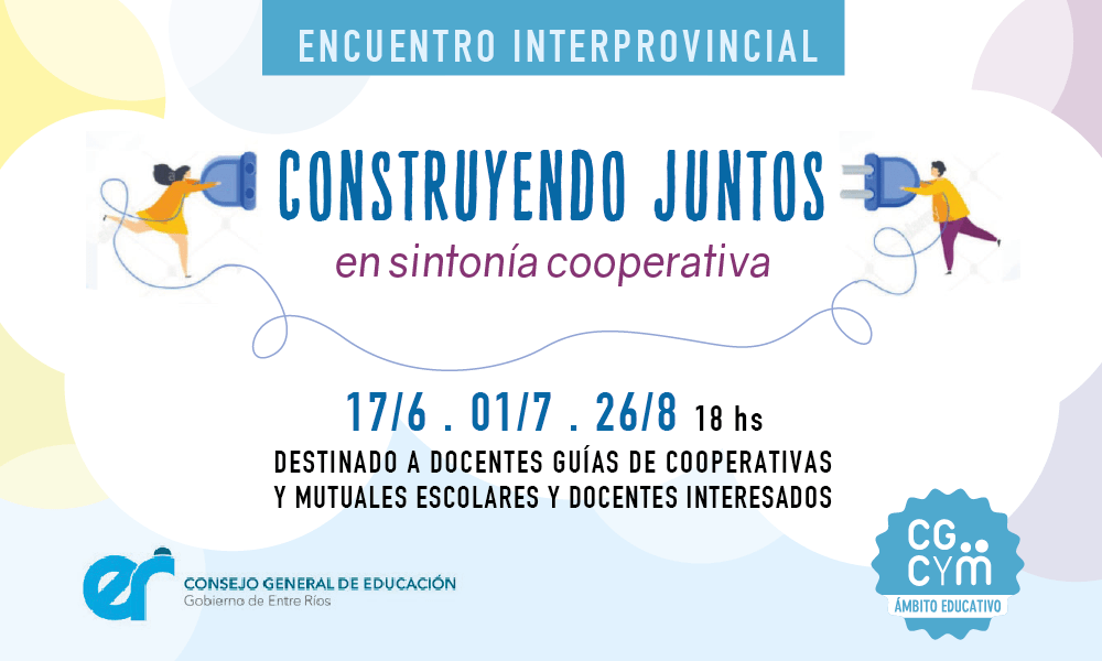 En el marco de la realidad que nos toca vivir, y ante la necesidad de fortalecer el encuentro con otros desde la Educación Cooperativa y Mutual, de compartir experiencias vividas y aprendidas por los docentes guías de cooperativas y mutuales escolares, en los distintos territorios, desde el Colegio de Graduados en Cooperativismo y Mutualismo (CGCYM) y el Consejo General de Educación de la Provincia de Entre Ríos (CGE), nos proponemos juntos y conectados, acompañar a los docentes en este transitar, propiciando espacios para el intercambio y el enriquecimiento mutuo.