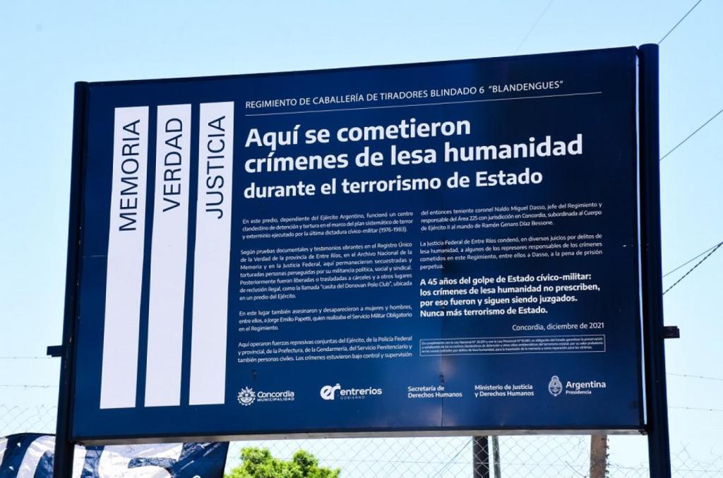 Asimismo es justo recordar que una parte de la ciudadanía de Concordia, por acción u omisión, participó de estos lamentables hechos. Y por eso hablamos de dictadura cívico-militar, dado que hubo civiles e instituciones que promovieron el genocidio, que fueron cómplices y parte integrante y necesaria para la desaparición de cientos de personas en la ciudad y en la provincia.