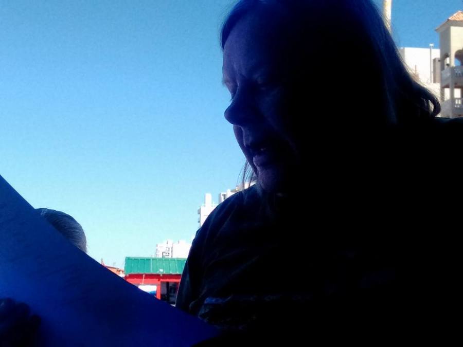 No de muy buena gana terminamos arreglando una entrevista. El hombre de unos 60 años, cuenta una situación sentimental desgraciada. Un largo noviazgo interrumpido por la muerte de la mujer. Y este duelo aparece reiteradamente en su escritura. En fin, por demás delicado. Al conversar acerca del trabajo sobre lo escrito encuentro poca lectura de escritores conocidos. Más bien, es una persona que asiste a grupos que se organizan como peñas, con mucho apoyo social y afectivo, pero donde casi no se hace crítica ni frecuentan las literaturas de diferentes orígenes. En cambio, se leen mucho entre los asistentes para acompañarse, objetivo nada desdeñable en esta sociedad tan cruda y violenta.