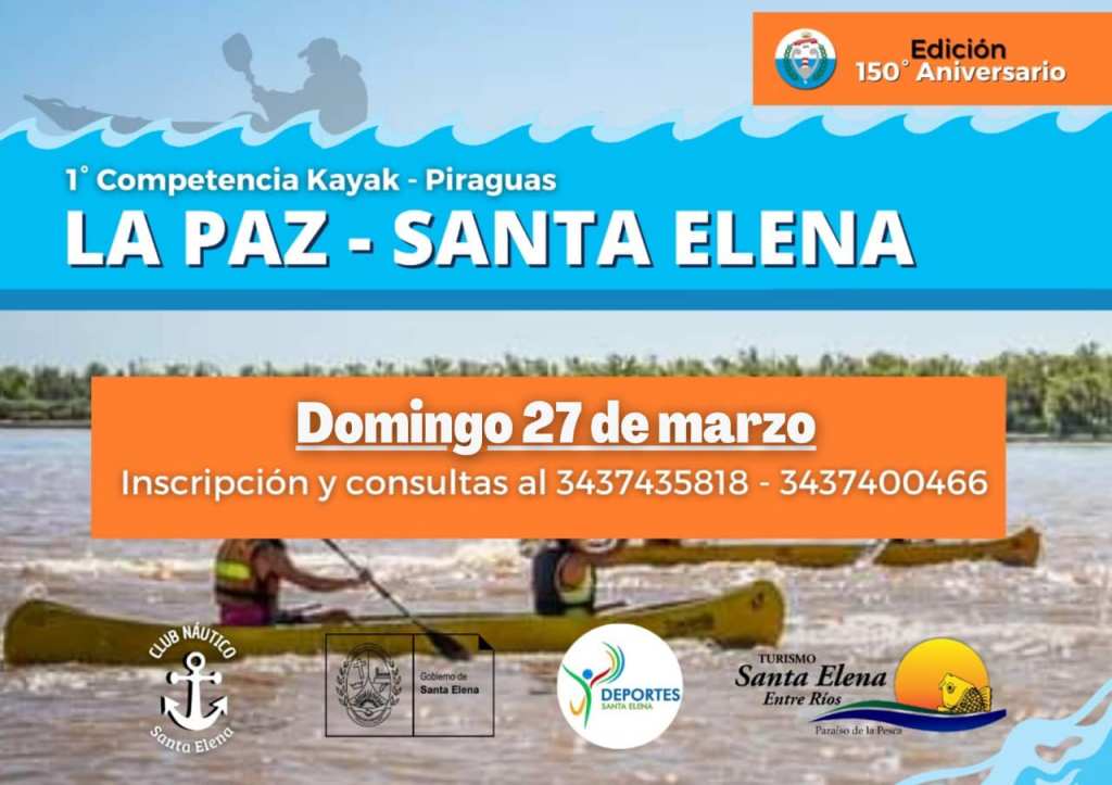La Municipalidad de Santa Elena, a través de la Coordinación de Deportes Municipal acompaña la 1° Edición de Competencia de Kayaks y Piraguas, una iniciativa del Club Náutico local, este próximo domingo 27 de marzo.
