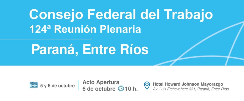 Con la presencia de autoridades nacionales y los titulares de las 24 carteras laborales del país, durante jueves y viernes de esta semana, el Consejo Federal del Trabajo realizará su 124º reunión plenaria en Paraná.