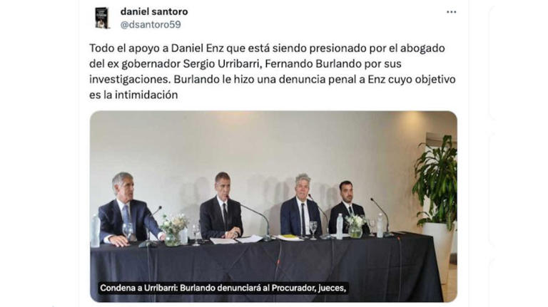 Luego de que trascendiera la denuncia contra Enz, los periodistas Daniel Santoro y Claudio Savoia enviaron su apoyo hacia su colega. «Todo el apoyo a Daniel Enz que está siendo presionado por el abogado del ex gobernador Sergio Urribarri, Fernando Burlando, por sus investigaciones», indicó. «Burlando le hizo una denuncia penal a Enz cuyo objetivo es la intimidación», escribió Santoro.