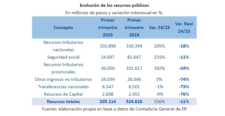 Dentro de los recursos tributarios provinciales recaudados en el primer trimestre (acumulado), los Ingresos Brutos ocupa casi la totalidad de la recaudación provincial (90% del total de impuestos provinciales) el cual creció 267%, es decir, tuvo una leve caída en términos reales de -2%. El convenio multilateral aumentó 17% en términos reales, mientras que el directo disminuyó en un -18%.