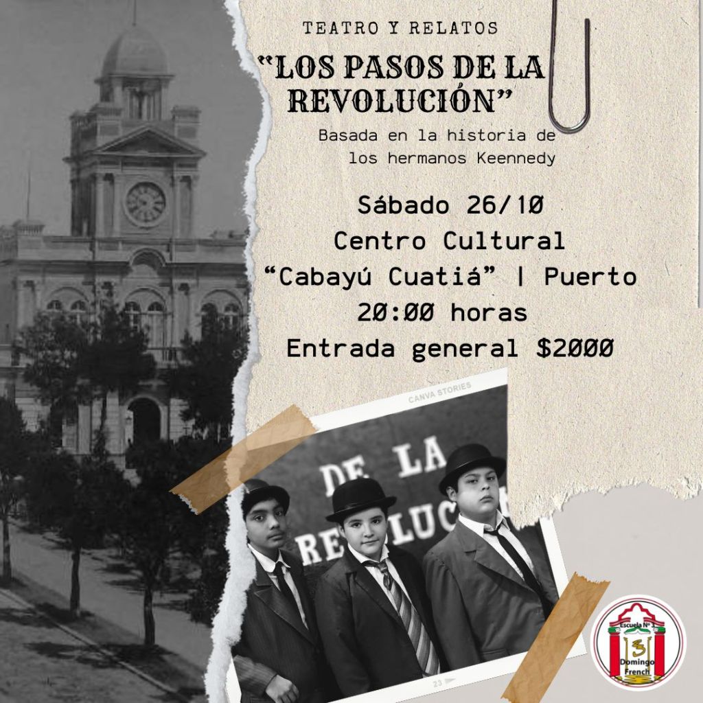 La obra que será presentada el sábado 26 de octubre en el Centro Cultural Cabayú Cuatiá es un trabajo articulado entre los Talleres de Ciencias Sociales y Teatro con el protagonismo de estudiantes de sexto grado A,B,C y D de la escuela primaria «Domingo French».